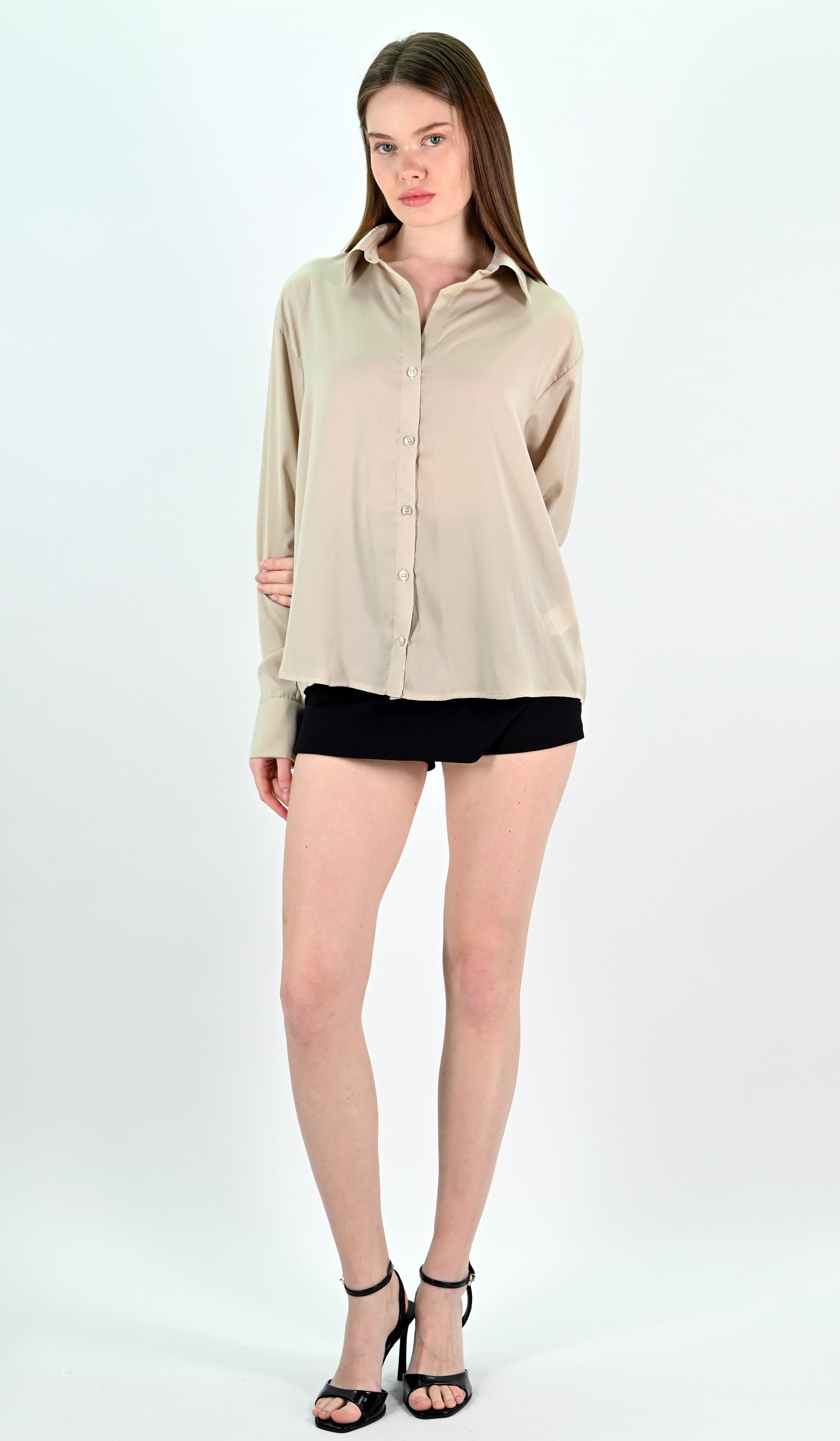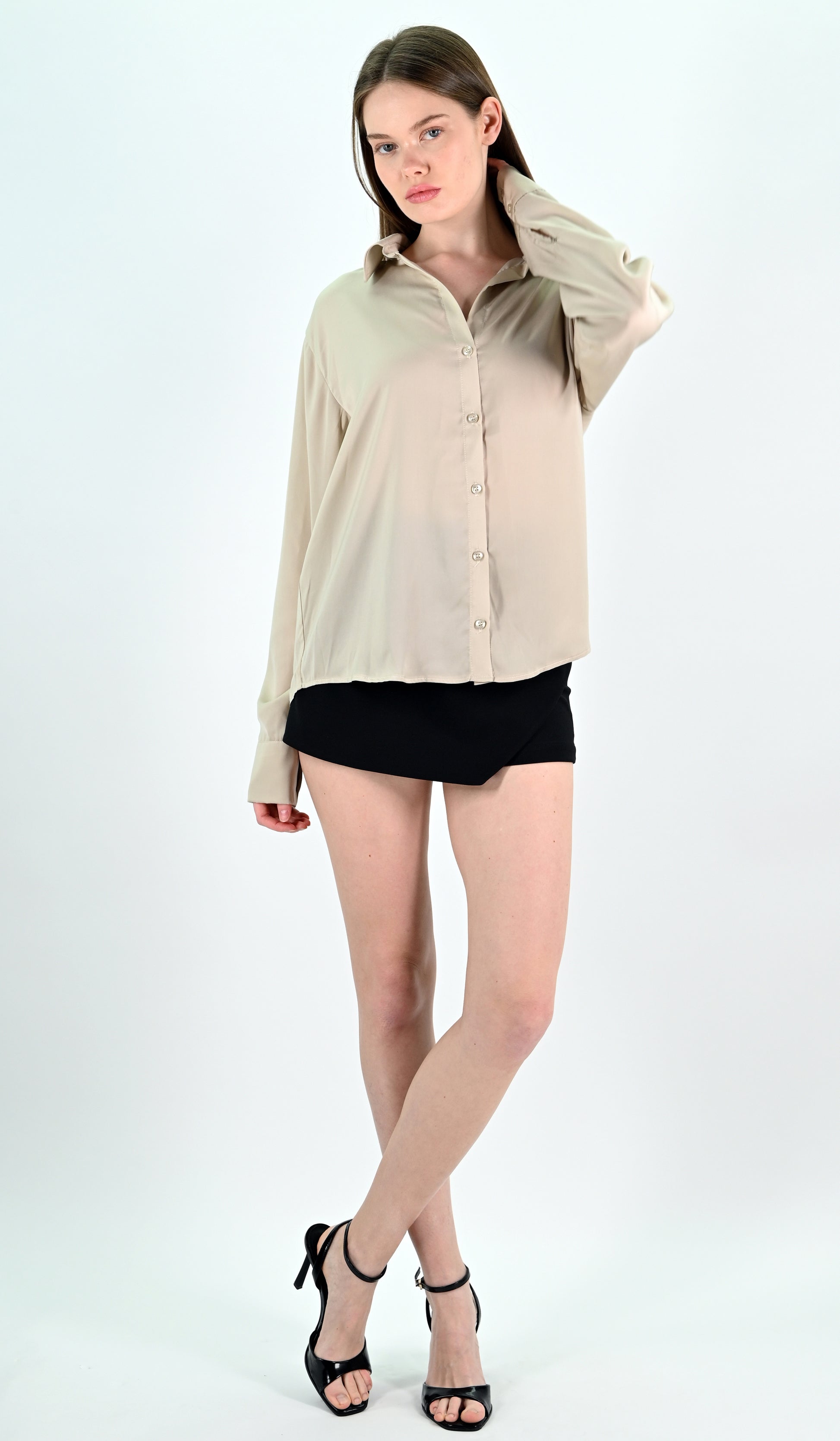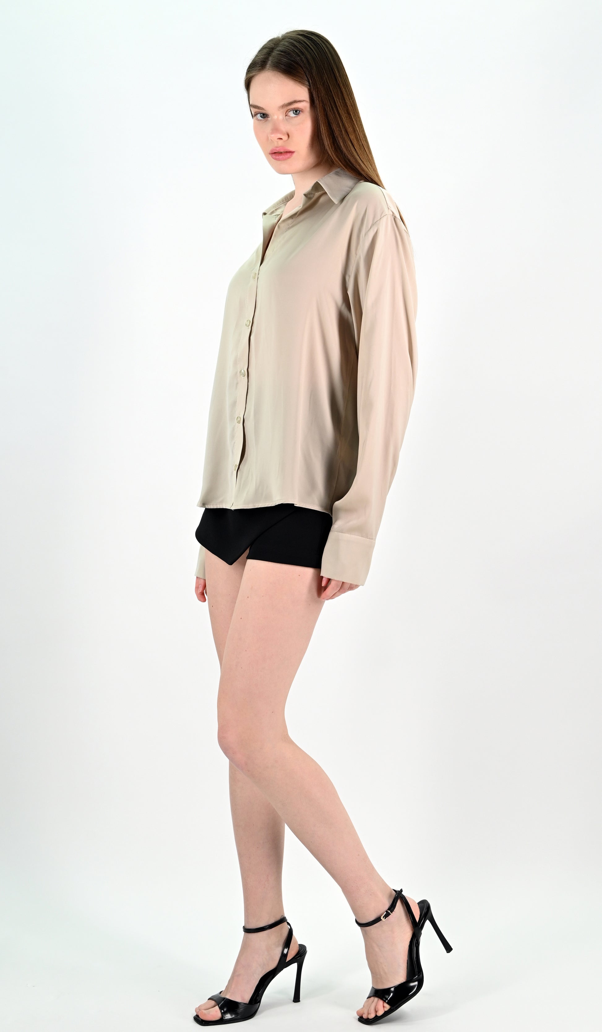 Effortlessly chic, this beige satin shirt offers a warm neutral tone that pairs beautifully with any color palette. The silky texture adds a touch of luxury to everyday looks, while the relaxed fit ensures comfort without compromising style. Ideal for both office wear and weekend looks.