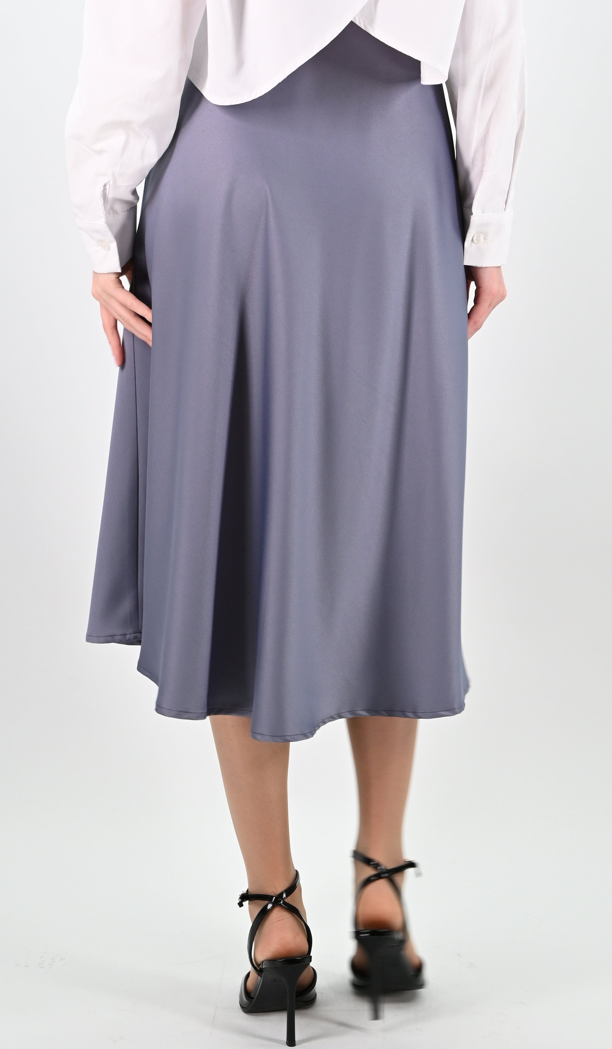 Chic and contemporary, this blue-grey satin midi skirt offers a subtle pop of color with a sophisticated twist. Made from smooth, glossy satin, it flows effortlessly with every step. The flattering high-waist cut and midi length make it perfect for day-to-night wear. Style it with a neutral top for an understated look, or pair it with bold accessories for an eye-catching ensemble.