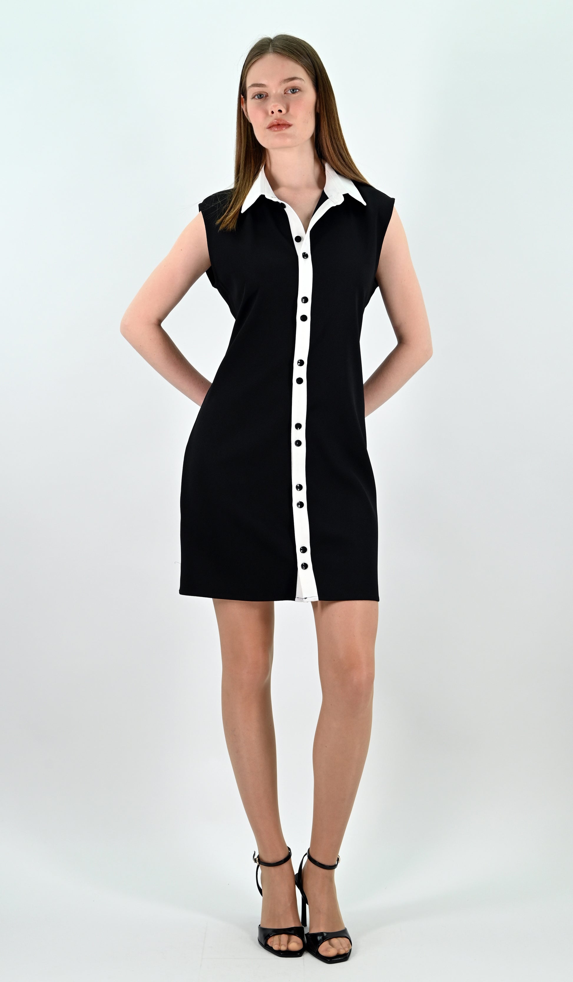 This Contrast Mini Dress in black and white offers a sleek, modern silhouette perfect for both casual and formal occasions. Its sharp color blocking enhances your figure, while the mini length adds a youthful edge. Crafted for comfort and style, this dress is an essential piece for a refined, contemporary wardrobe.