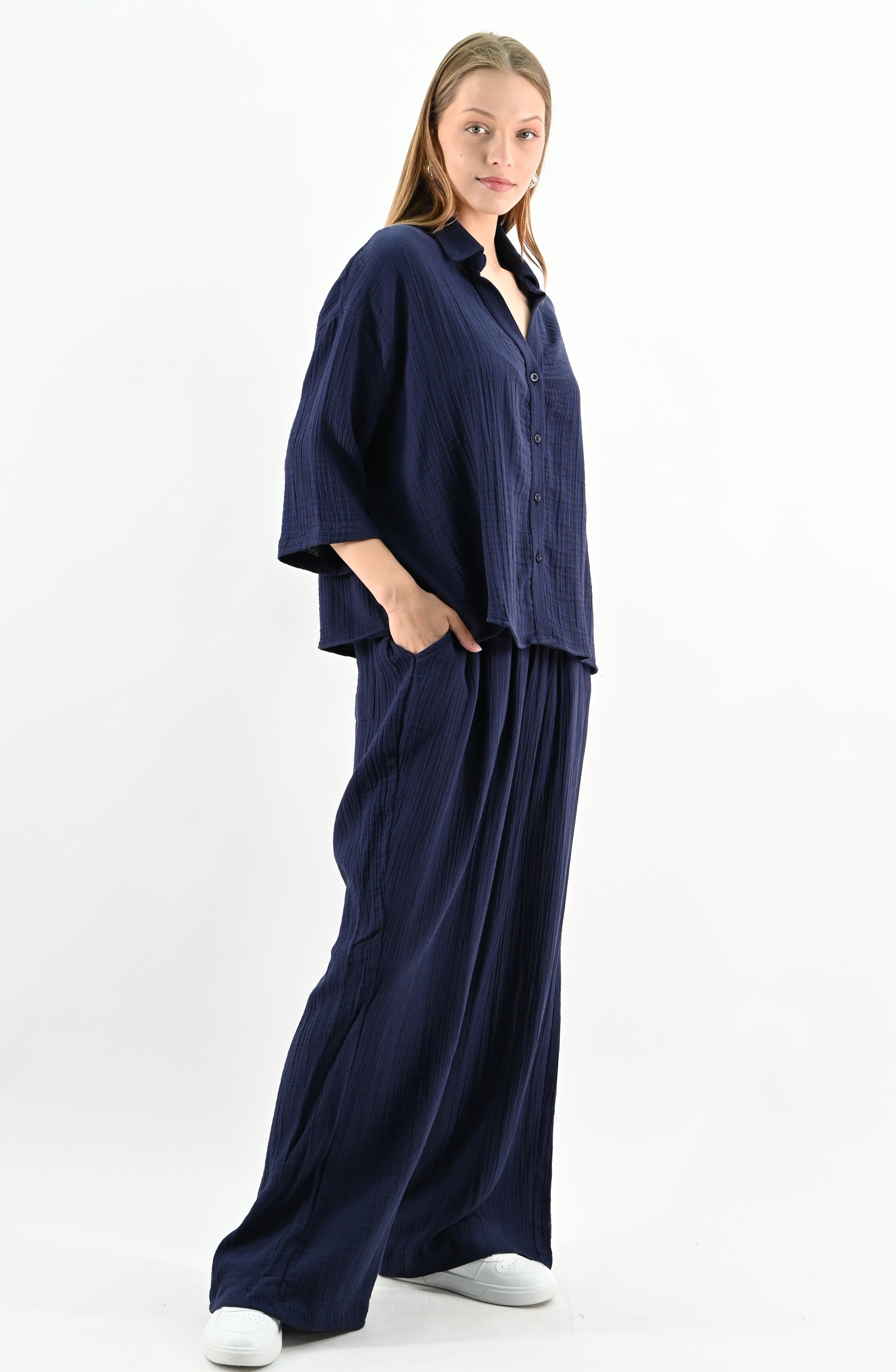 Crafted from a breathable linen blend, this navy oversize shirt offers both comfort and effortless style. Its relaxed fit ensures ease of movement, making it ideal for layering or wearing alone. The timeless navy hue adds versatility, suitable for both casual and refined looks. Perfect for those seeking a sophisticated yet laid-back wardrobe staple.