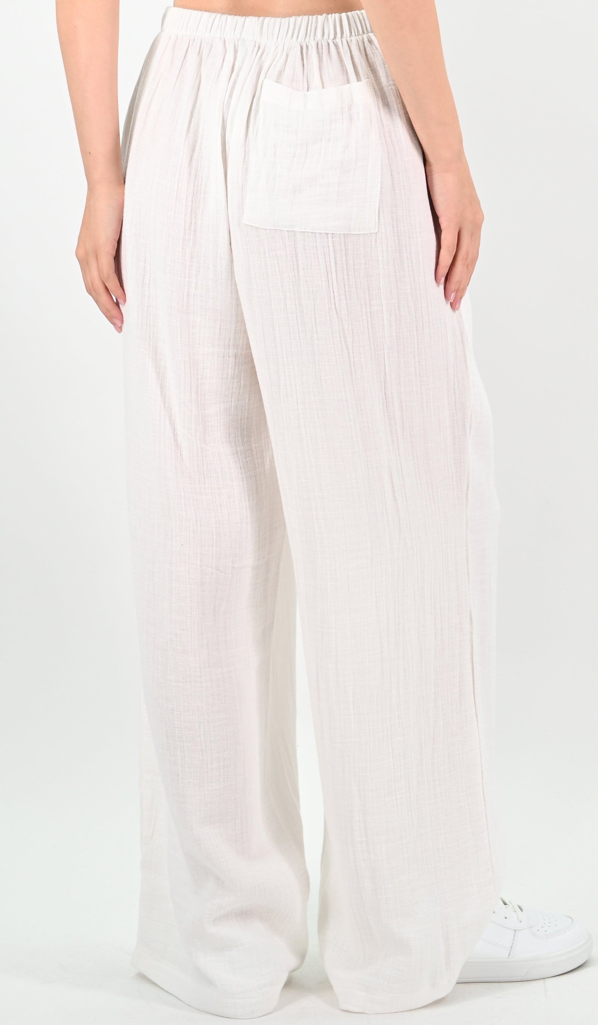 These off-white wide-leg trousers crafted from a linen blend offer a refined balance of comfort and structure. The breathable fabric ensures all-day wearability, while the wide-leg cut provides a modern silhouette that flatters various body types. Ideal for both professional and casual settings, these trousers combine timeless style with practical ease.